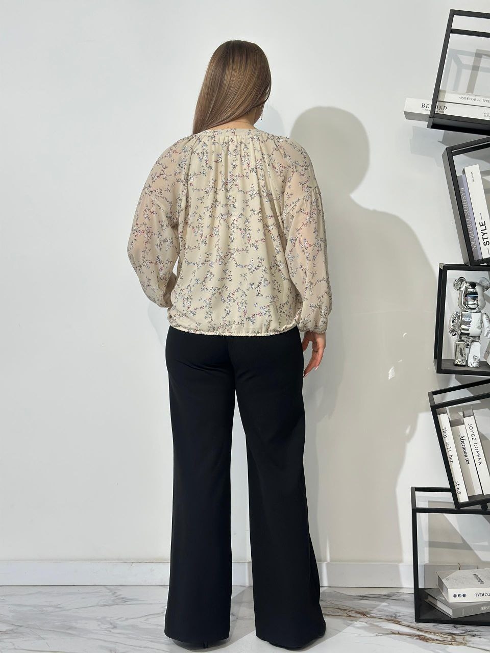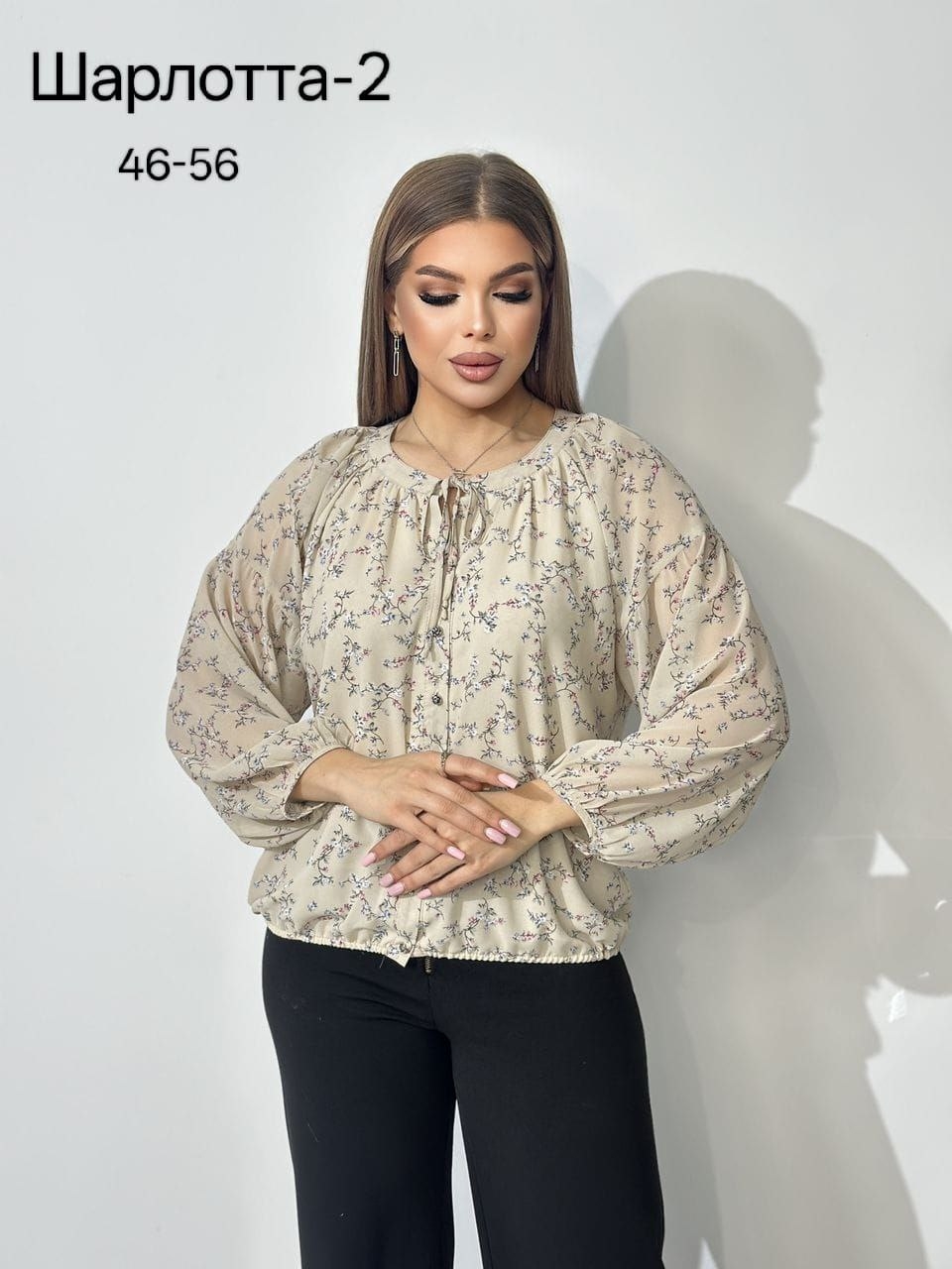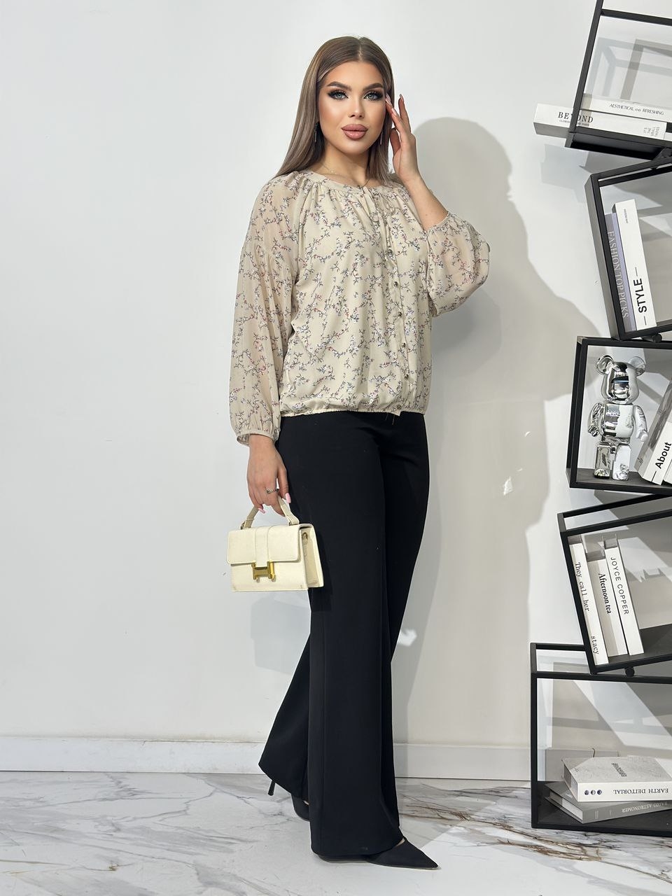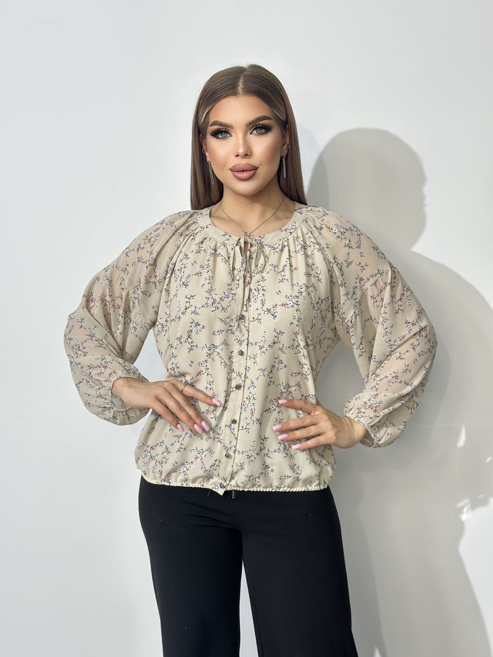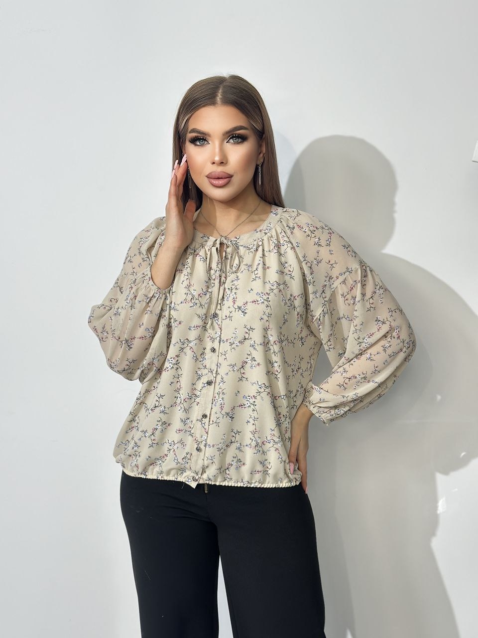 • Блузка застегивается на пуговицы,  с обьемными рукавами, низ и рукав изделия присобран на резинку, приятная к телу ткань.