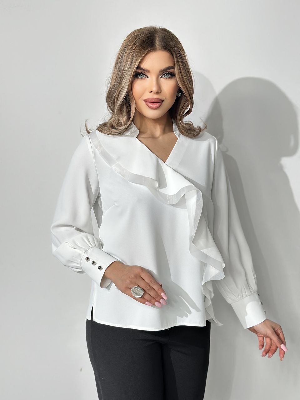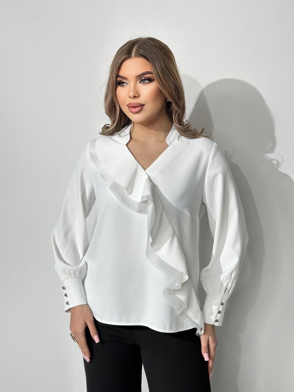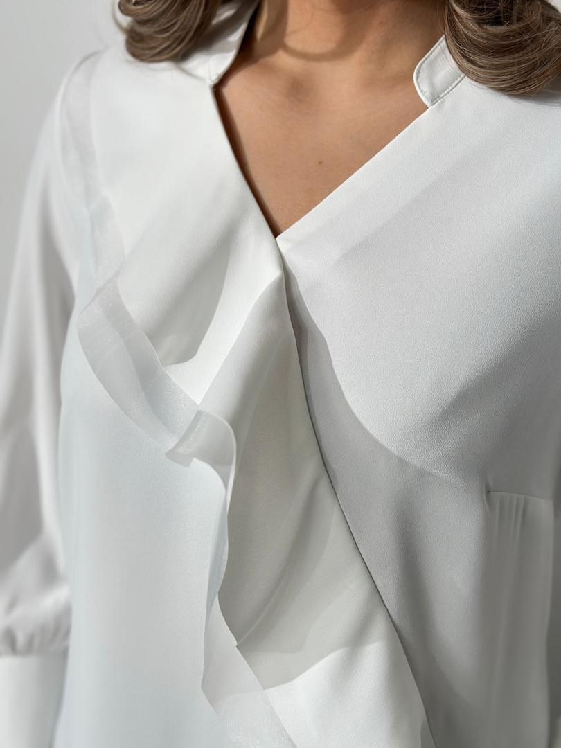 heartТрендовая шелковая блузка Волан 1. Ищете идеальную блузку, которая станет незаменимой частью Вашего гардероба? Представляем Вам нашу шикарную блузку Волан с V-образным вырезом и воланами ! Эта премиум блузка с длинным рукавом идеально вписывается в модные тренды 2025-2026 годов и доступна в размерах 46-56.