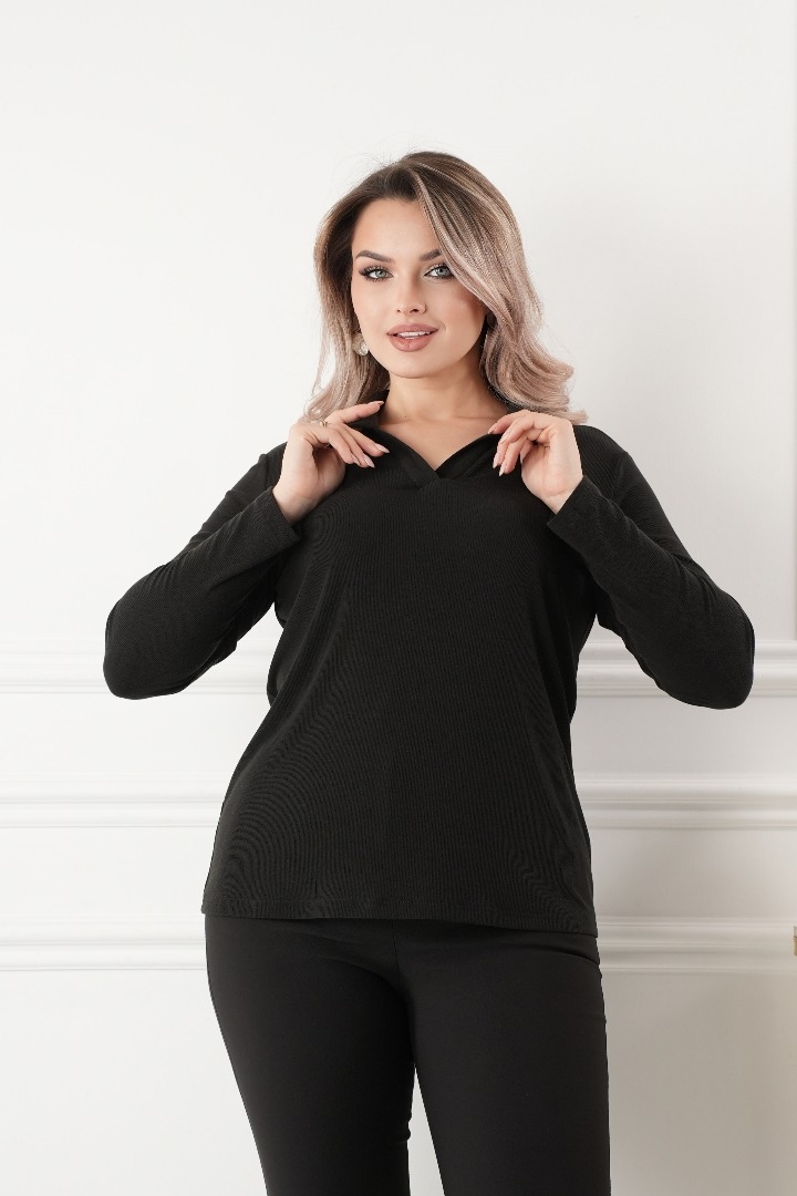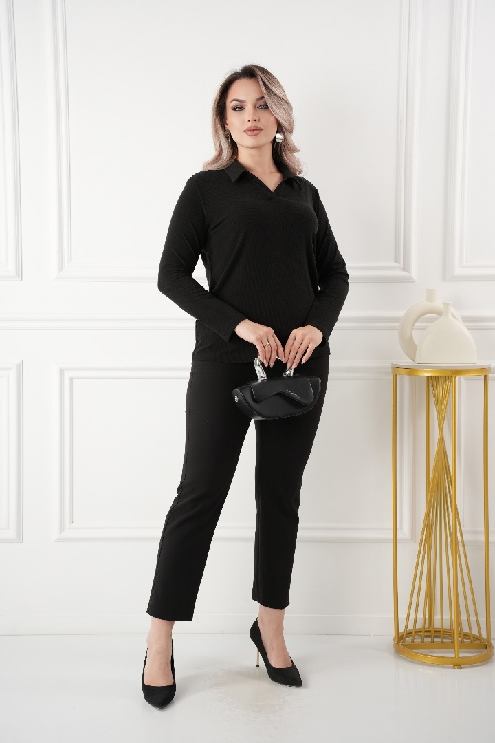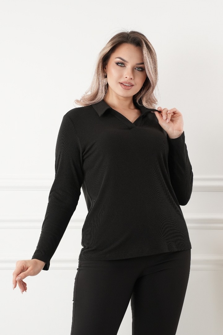 Комфорт и стиль: Изготовленный из мягкого трикотажа с высоким содержанием вискозы с V-образным вырезом и воротником, эта блузка обеспечивает максимальный комфорт в течение всего дня. Ткань обладает отличной эластичностью, что позволяет свободно двигаться и чувствовать себя уверенно.